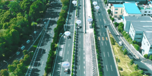A laser rangefinder is adopted to position itself during travelling and hoisting. The system has achieved a high stopping accuracy through real-time distance measurements.